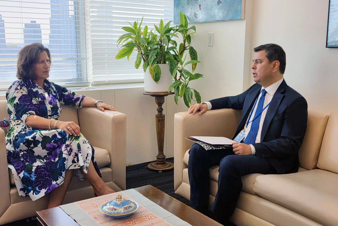 9月19日,乌兹别克斯坦总统新闻秘书谢尔佐德·阿萨多夫同联合国全球传播事务副秘书长梅丽莎·弗莱明在纽约举行会晤。双方就信息领域合作、打击虚假信息、记者培训等议题交换意见。乌方与联合国表示将扩大合作,推动促进可持续发展、打击虚假信息和吸引青年参与的关键举措与行动。